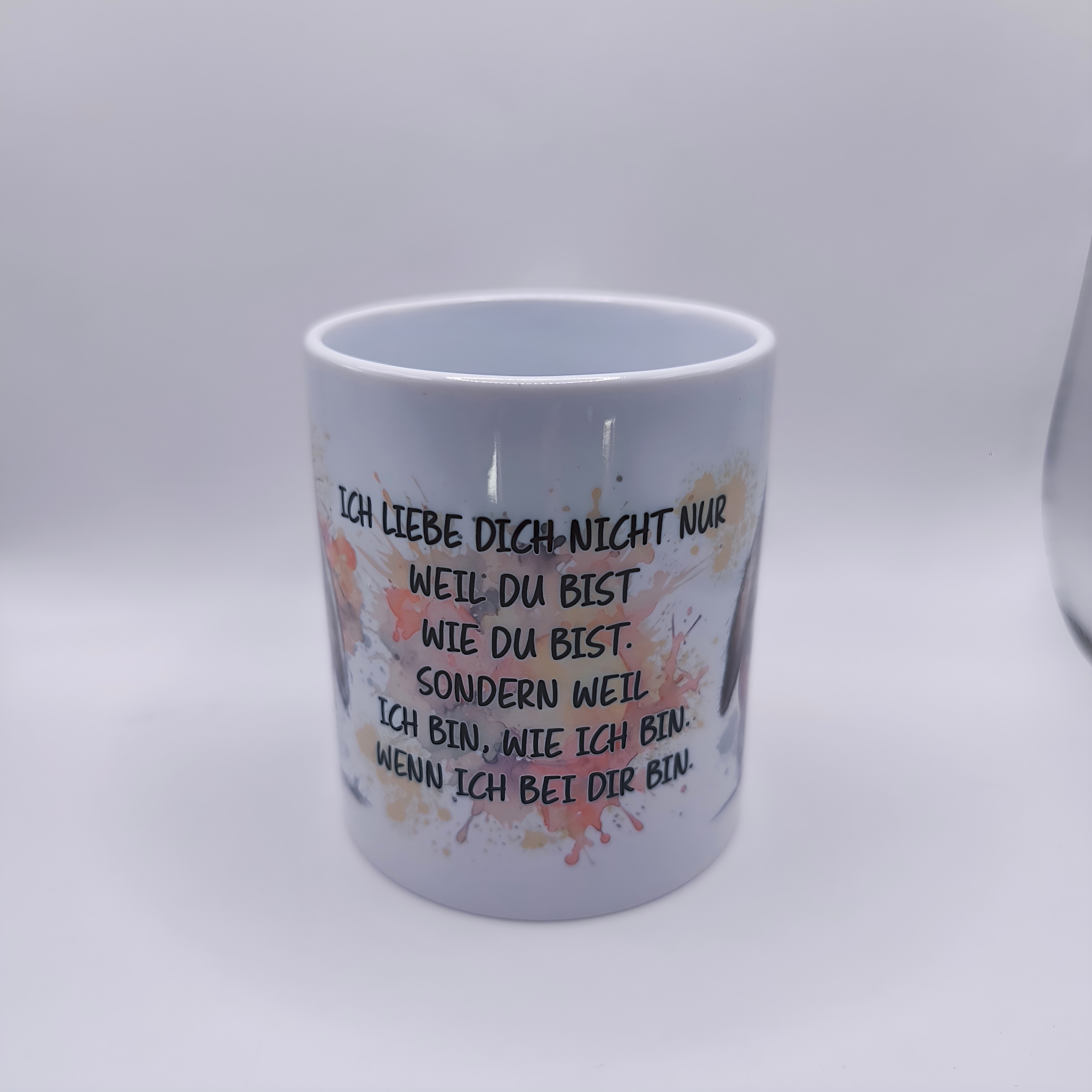 Diese wunderschöne Tasse im zarten Aquarell-Design strahlt Ruhe, Geborgenheit und tiefe Verbundenheit aus. Zwei unterschiedliche, besonders niedliche Widderhäschen mit herabhängenden Ohren sind liebevoll gestaltet und fügen sich harmonisch in den sanften Aquarell-Hintergrund ein. Die zarten Pastelltöne aus Rosa, Gelb und einem Hauch Grau verleihen der Tasse eine warme, gefühlvolle Ausstrahlung. In der Mitte der Tasse befindet sich der emotionale Spruch: